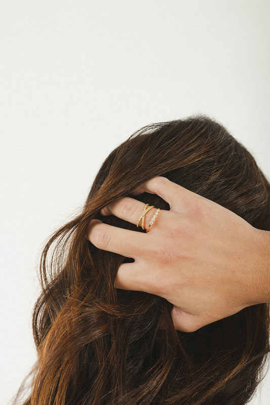 Media alianza ondas con diamantes y oro de 18 Kilates