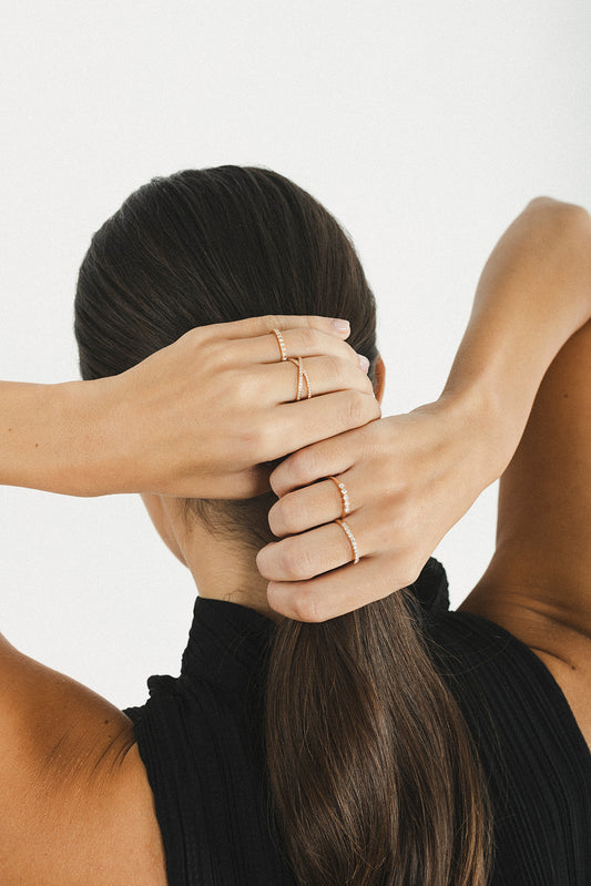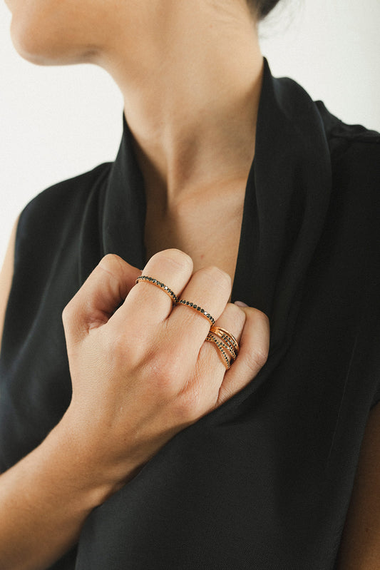 Media alianza degrade con diamantes y oro de 18 Kilates