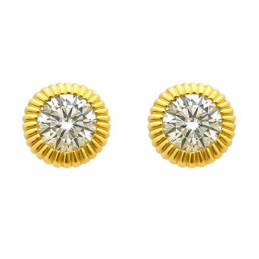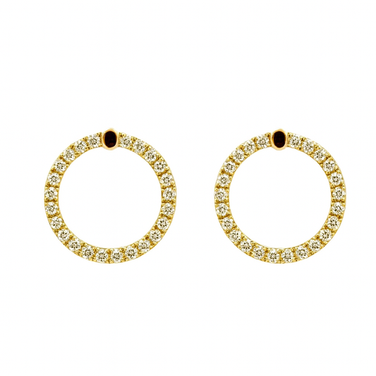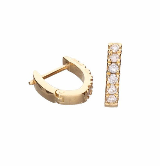 Par de pendientes aros en oro de 9 Kilates y diamantes