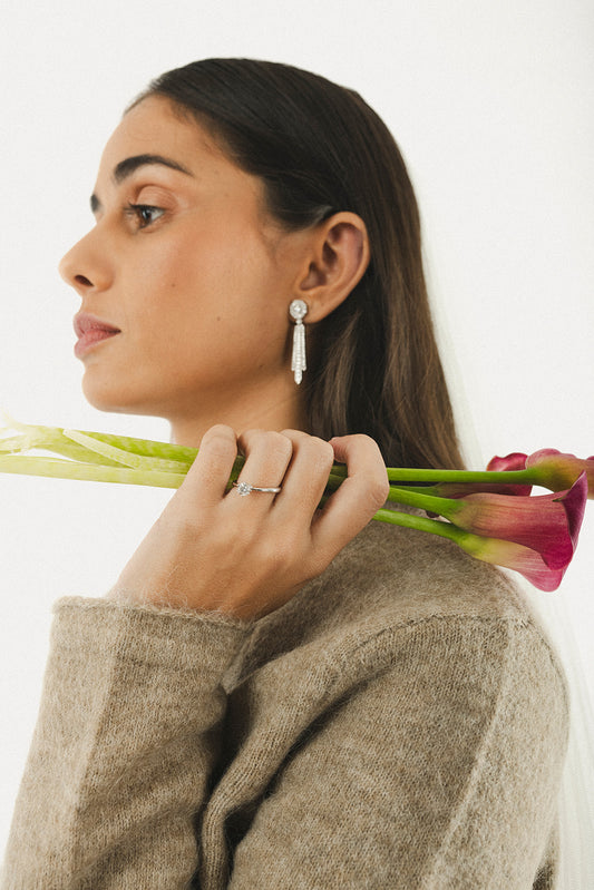 Solitario 4 garras con diamante y oro blanco de 18 Kilates