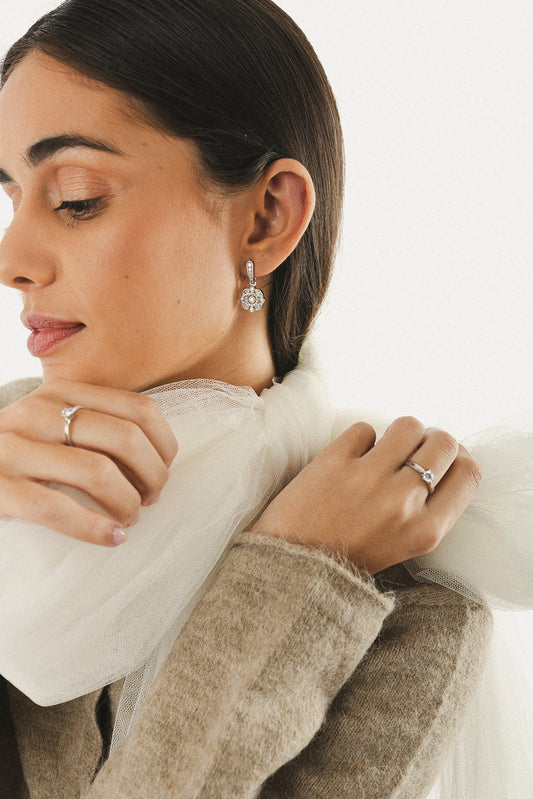 Solitario 4 patillas con diamante y oro blanco de 18 Kilates