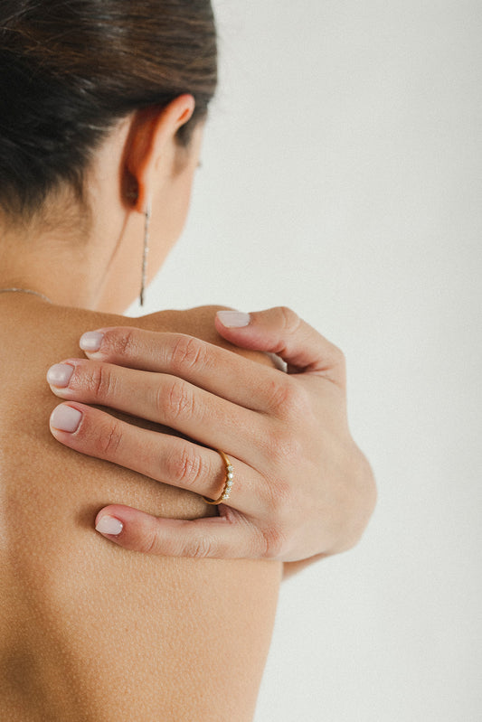 Media alianza degrade con diamantes y oro de 18 Kilates