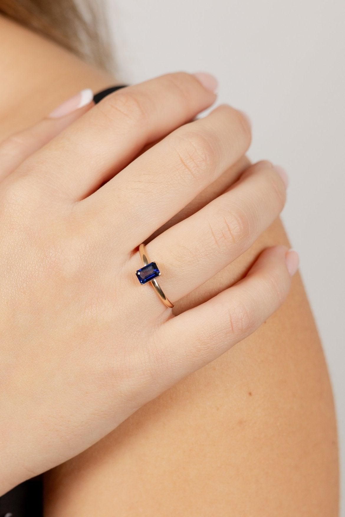 Anillo fabricado en oro de 9 Kilates con piedra de color talla octogono 6x4 con un total de 0,40 cts aproximadamente.